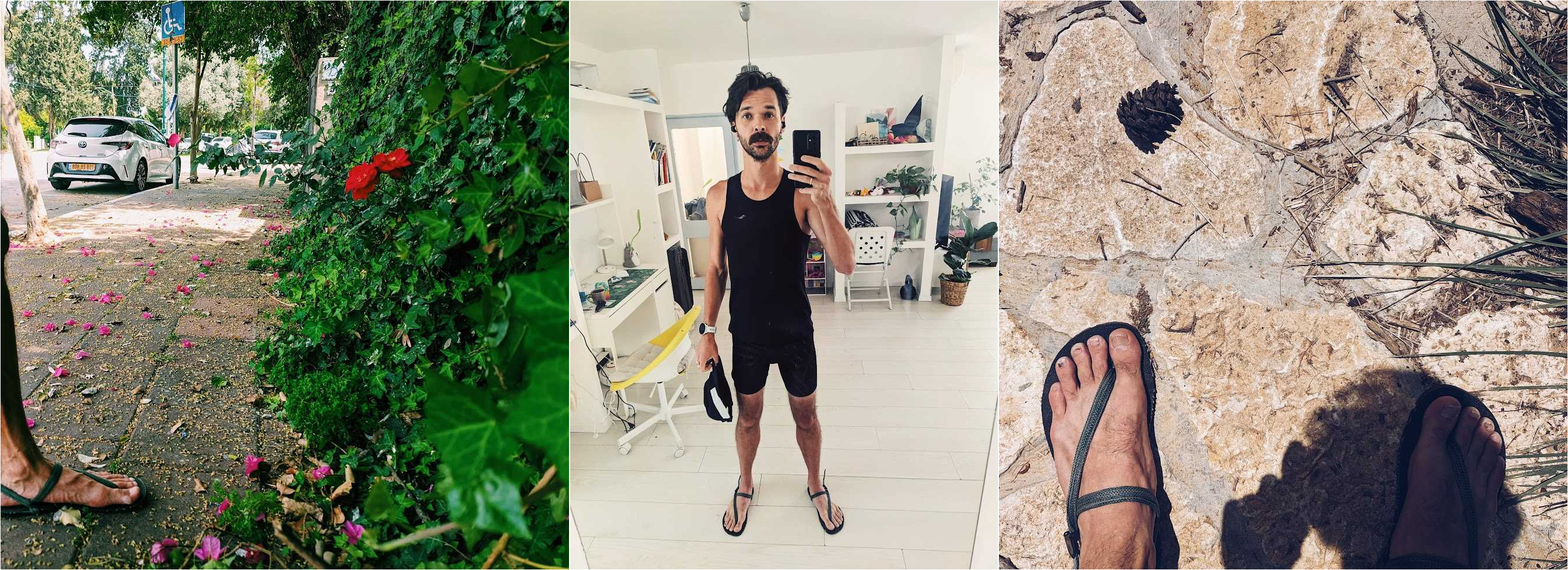 Пошел за сандалиями, которые, фактически, привязанная к ступне защита от стекла. Первые пару дней в них было трудно просто ходить: ремешки натирали между пальцами, но потом привык.